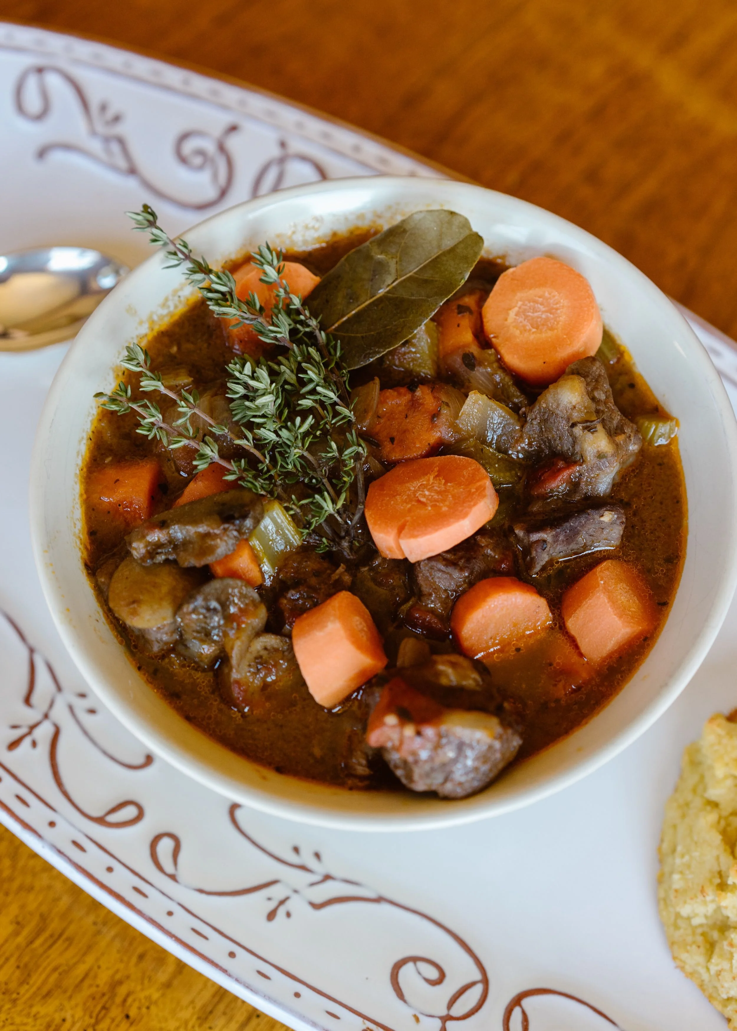 Just because you want to eat healthier doesn’t mean you have to deny yourself comfort food. This is the skinnier version of beef bourguignon yet it is full of the classic flavors. I use a much leaner cut of meat and lose the bacon fat. Wine is a crucial ingredient here, but I cut it in half. The flavors all come together to create a lighter, cleaner version without comprimising on taste! I think Julia would approve!