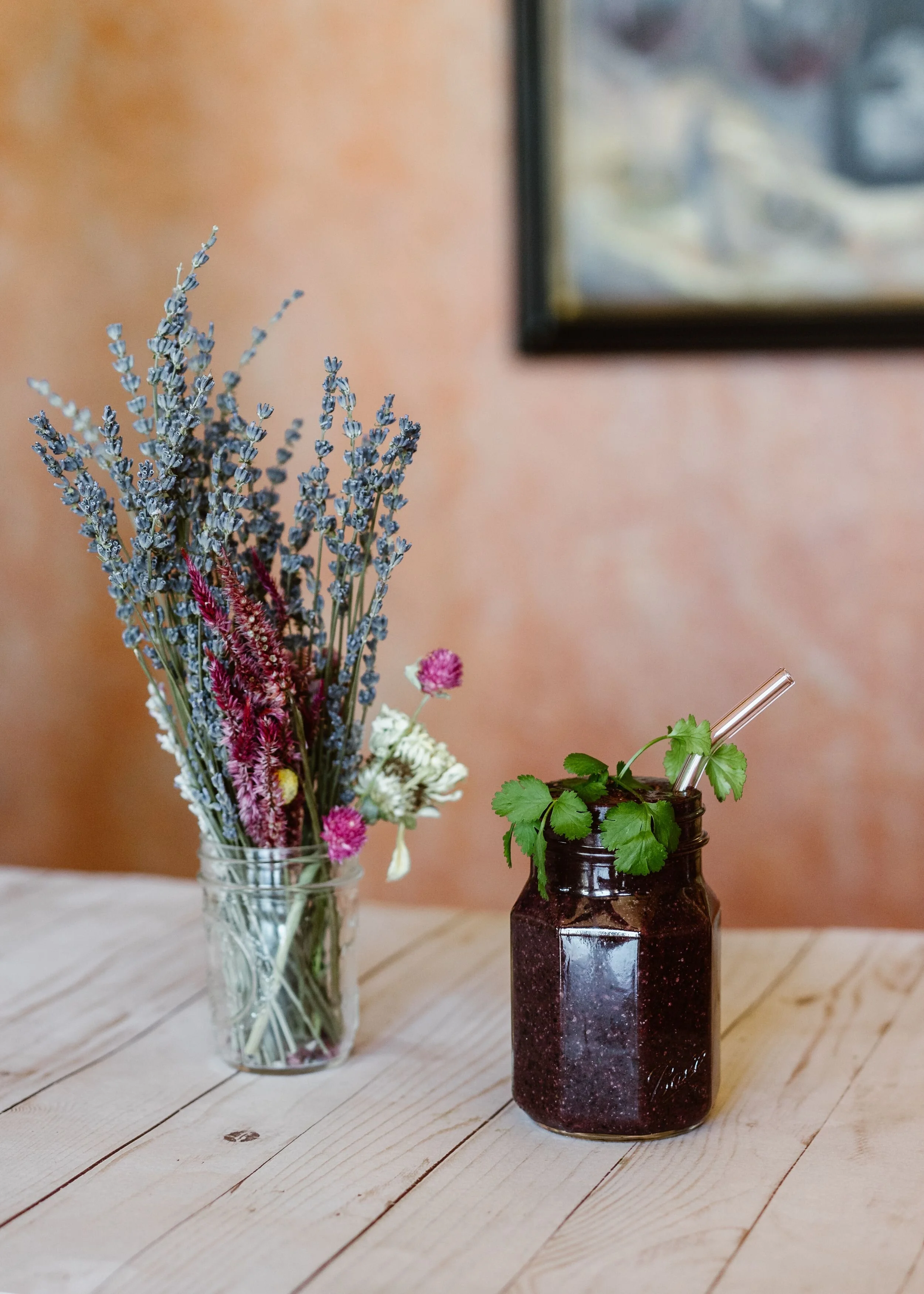 When it comes to brain food, there’s nothing like the antioxidant jolt of wild blueberries. Add in some walnuts with their high concentration of DHA, a memory boost. Then some cacao for improved focus and an and elevated mood. Leafy greens are for your cognitive protection and cilantro to remove heavy metals. Put this all together in a beautiful tasty smoothie and you’ve got yourself powerful sustenance for your brain. I think this smoothie fulfills the mantra “food is medicine”!