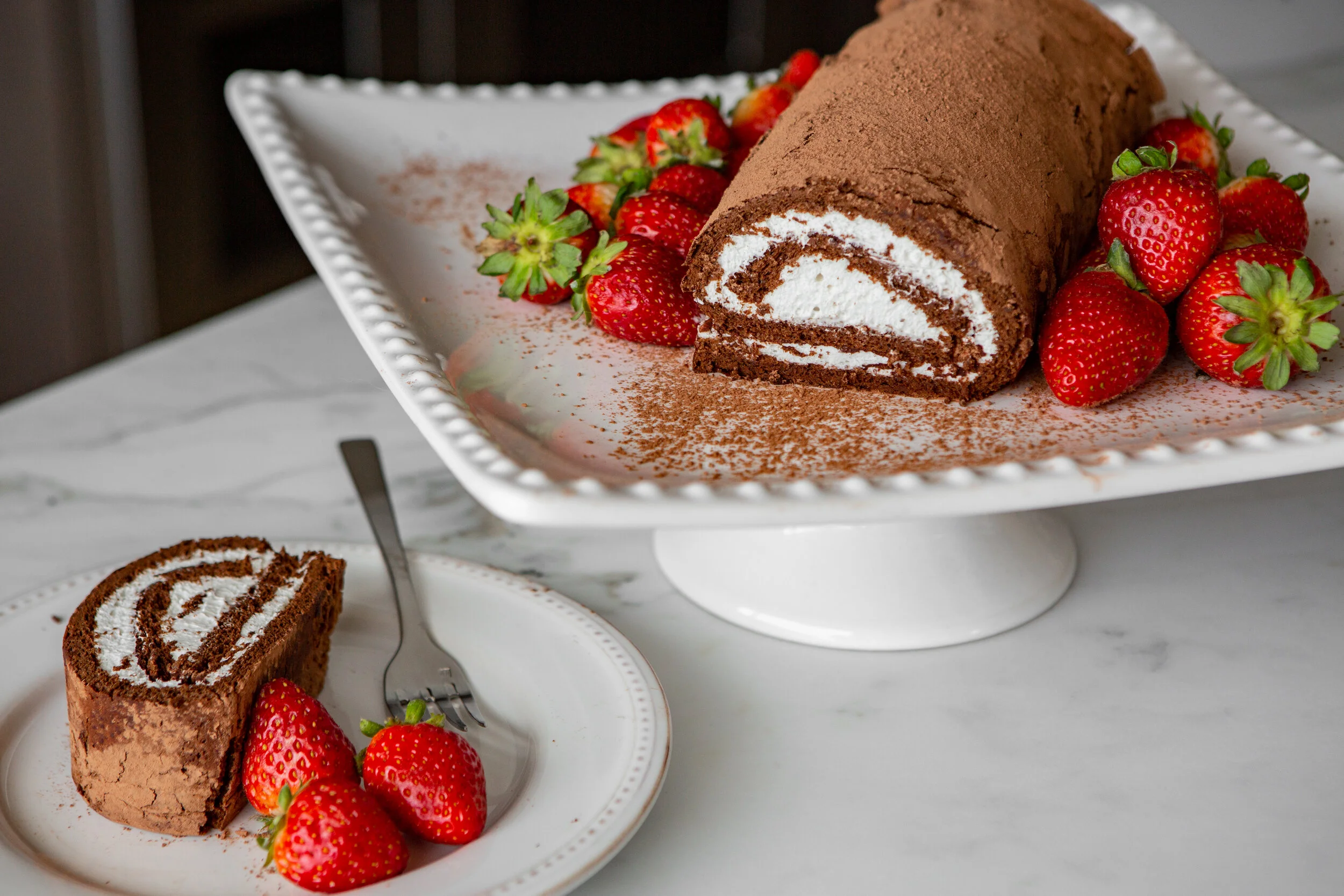 Carefully place the log on a platter and keep it chilled until you are ready to serve. Just before serving, dust it with the remaining cacao powder, and surround it with berries of your choice. Makes 10 servings.